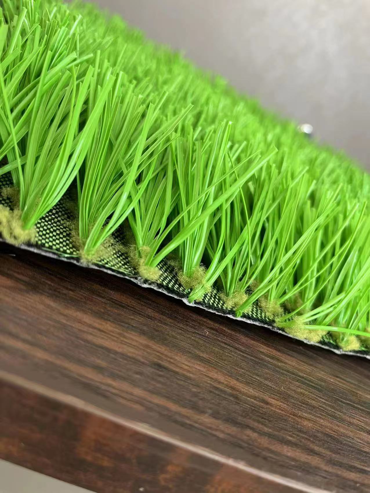 草坪運(yùn)用抗老化耐磨的優(yōu)質(zhì)草絲做原料,并使用 PU 背膠,抓牢草根力強(qiáng),耐水耐熱耐寒,耐撕裂、粘結(jié)性好,不易開膠裂紋,可抵抗頻繁踩踏碾壓,延長圖案清晰留存的壽命。